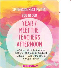 On Thursday, 9 February 2023, Springside West Secondary College is inviting all parents and carers of Year 7 students ( including the students) to come and meet the Springside West